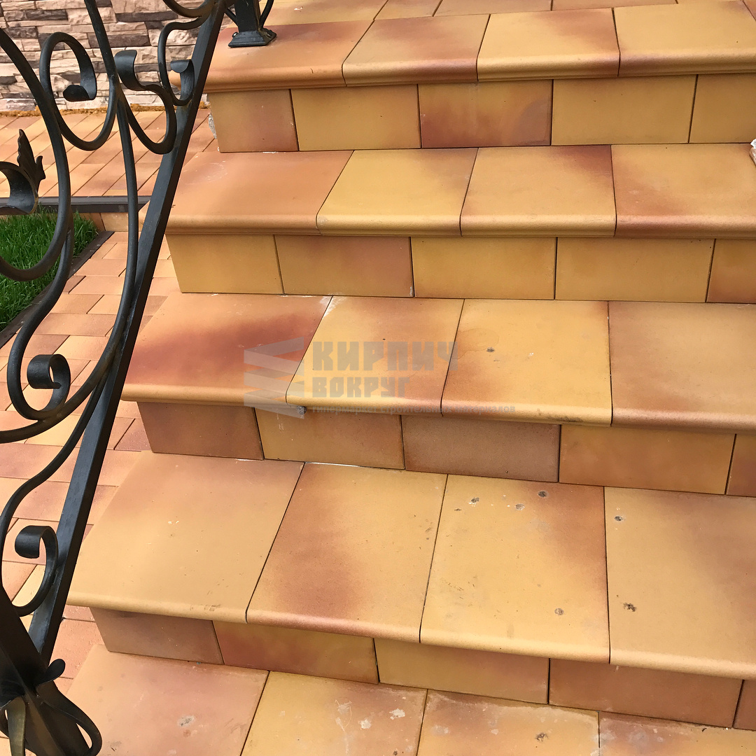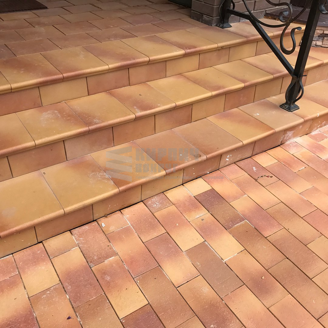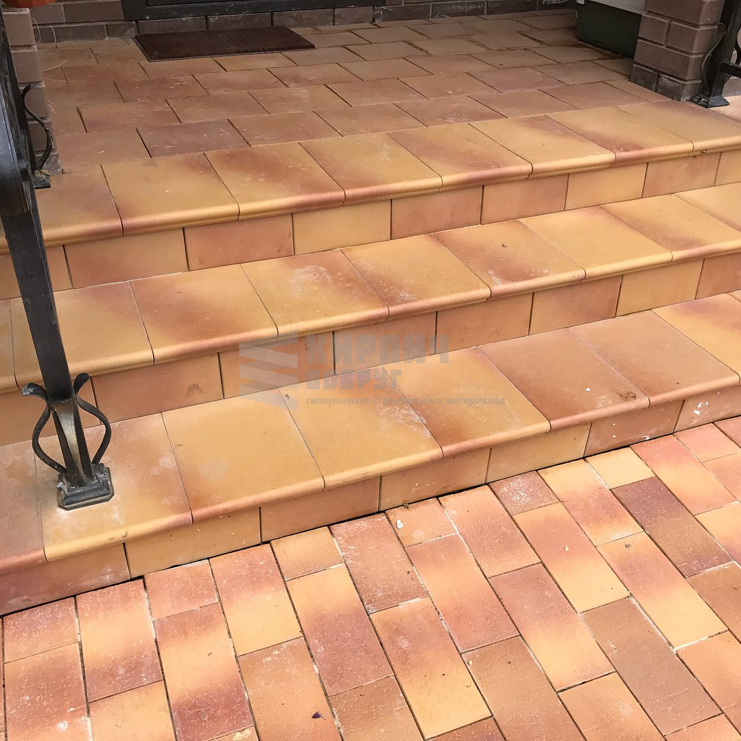 Клинкерные морозостойкие ступени и брусчатка Stroeher цвет 307!!! Отличное дизайнерское решение, красивое переливаете песочно-желтого цвета с красным!